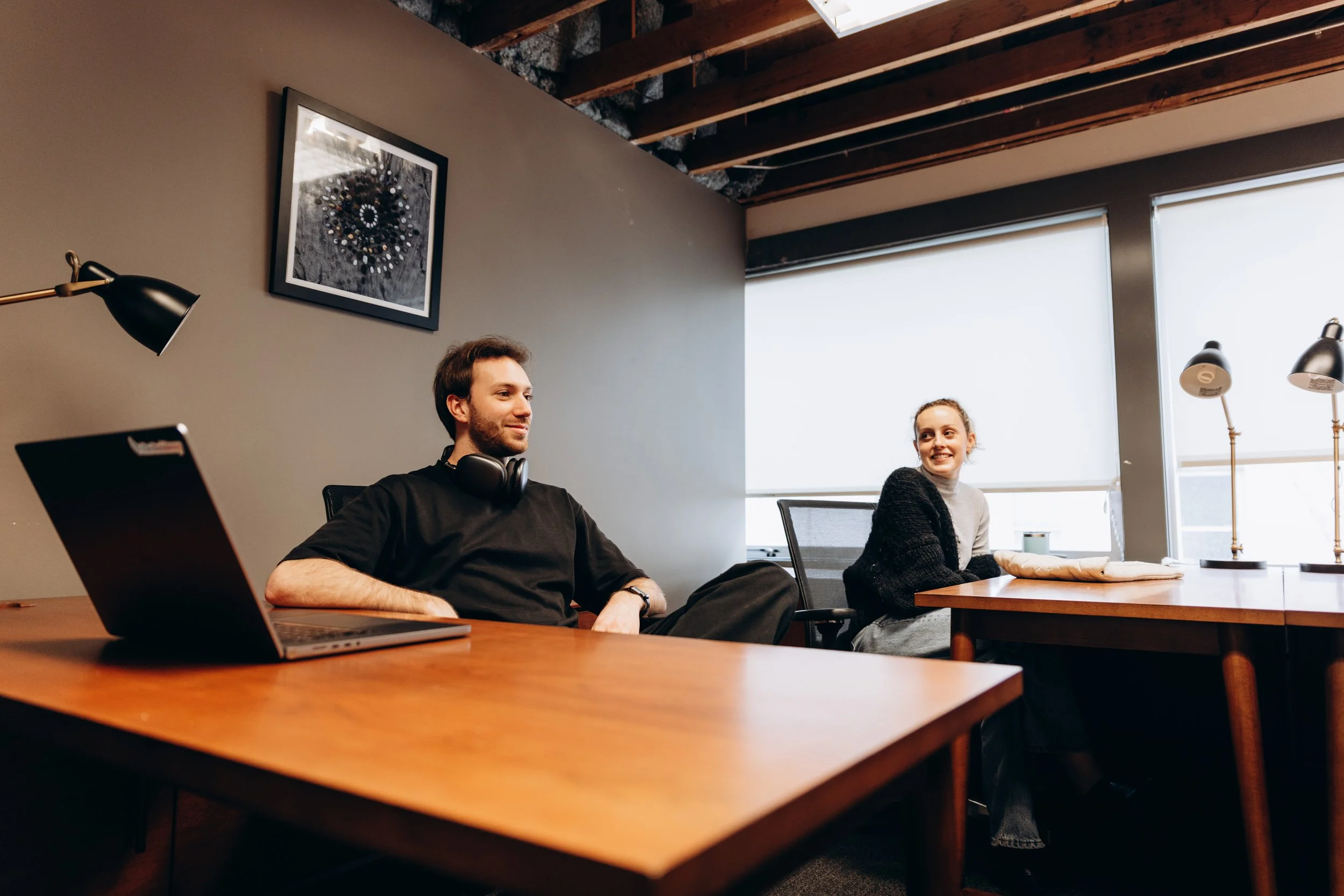 Industrial chic surroundings, outlets everywhere, fiber internet, free printing, and excellent beverages from our full-service coffee shop and wine bar help you focus, relax, and get your best work done.